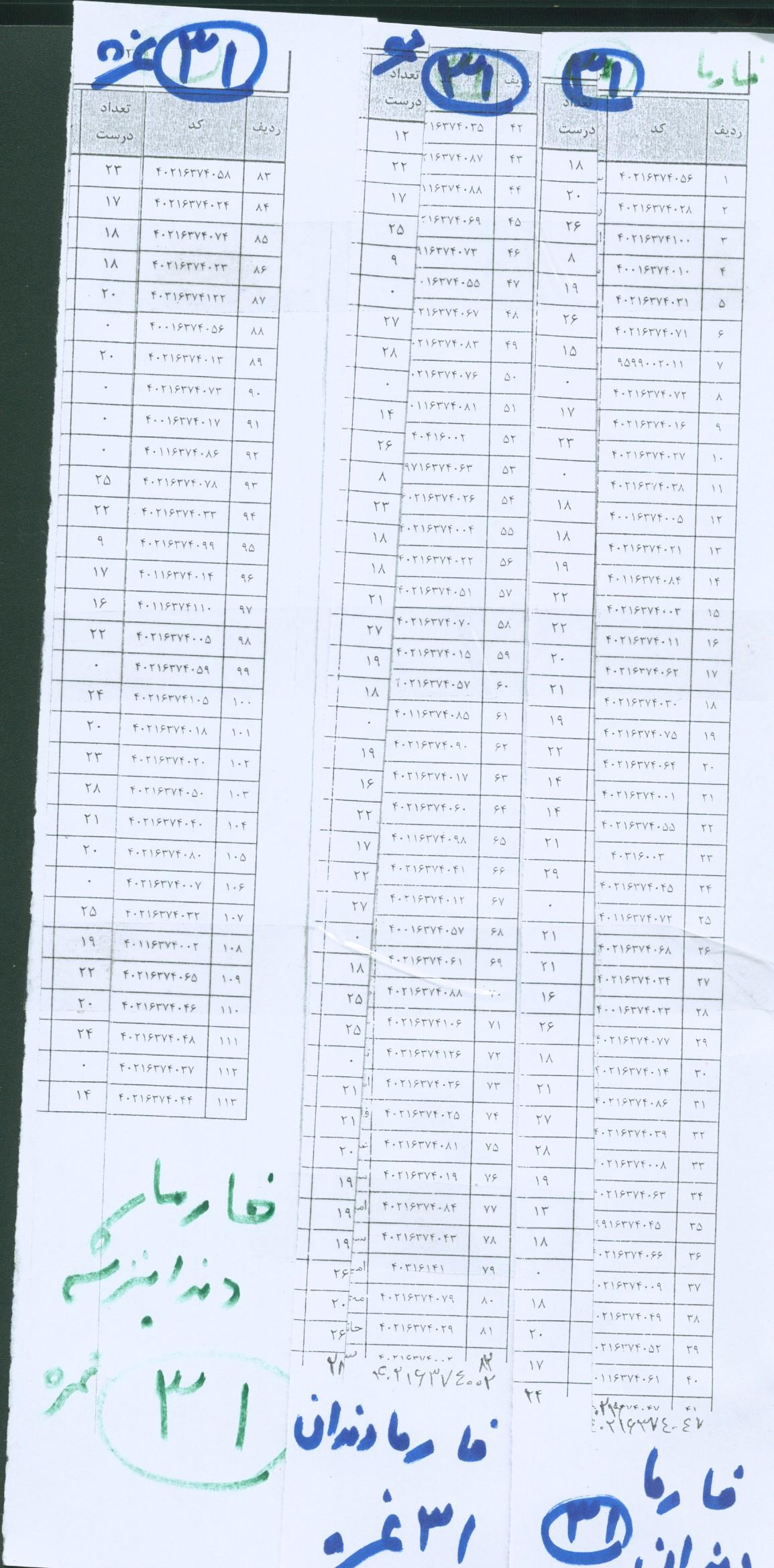 نتایج امتحانات